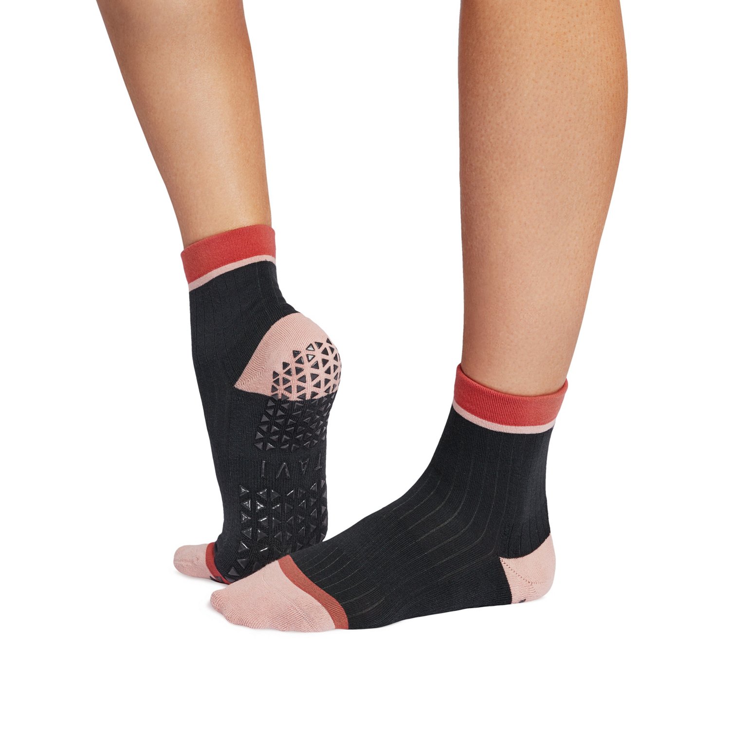 Elevate your stability and maintain your positioning with the Tavi Grip Aria Yoga Quarter Socks. The patented grip technology is flexible for highly controlled movement, and the arch band compression supports the foot during every studio movement.