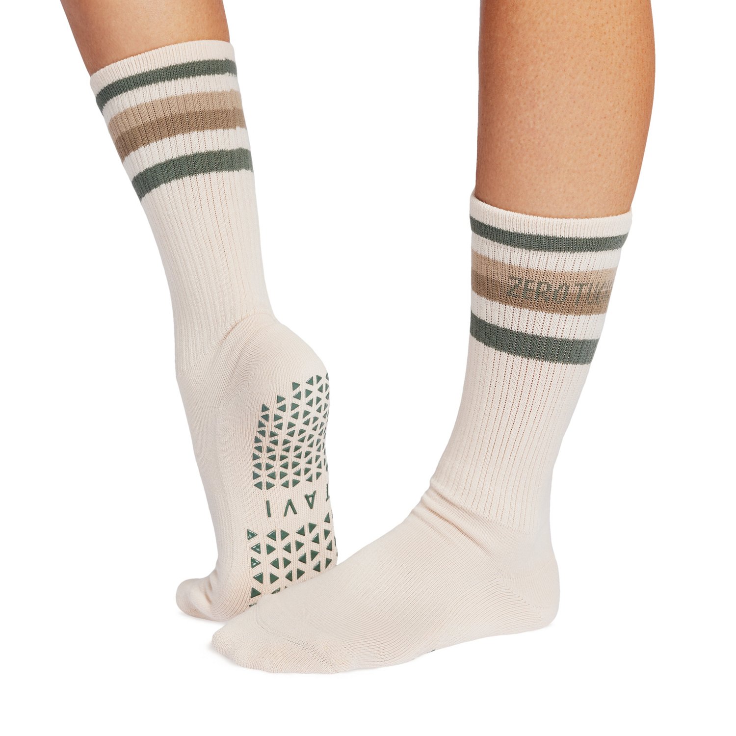 Classic styling meets cool control with the Tavi Kai Grip Yoga Crew Socks. The soles feature a grippy rubber pattern that helps keep movements safe and precise, and the compression arch band provides support and comfort.