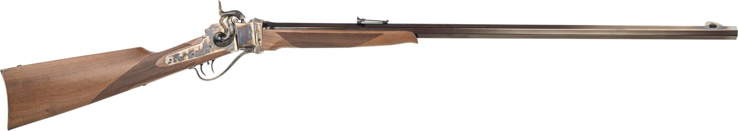 The Taylor's & Company 1863 .45 Colt One Shot Lever Action Rifle is a single shot rifle with percussion ignition. It features a blued octagon barrel set into a walnut hardwood stock, and it comes equipped with a dovetail rear sight and a blade front sight.