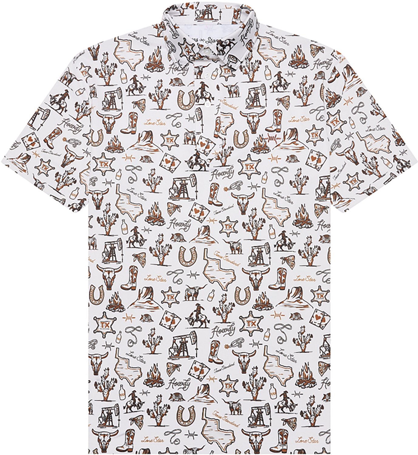 Stay comfortable and stylish from the golf course to the party in this Texas Standard Men's Chisholm Traditions Polo Shirt. It is made of 92% polyester and 8% spandex for an ultrasoft stretch performance fabric, and the material is moisture-wicking and quick-drying to help keep you comfortable throughout the day.