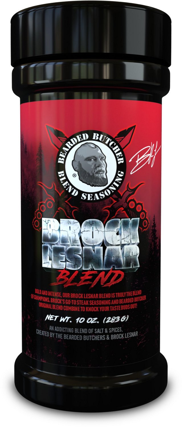 Enhance your dishes with the The Bearded Butchers 12 oz Brock Lesner Blend. The garlic and salt flavors bring out the boldness of meals, and the combination of the Bearded Butcher Original Blend with Brock's favorite steak seasoning intensifies the dish. The seasoning is free from sugar and MSG delivering a pure addition to your meal.