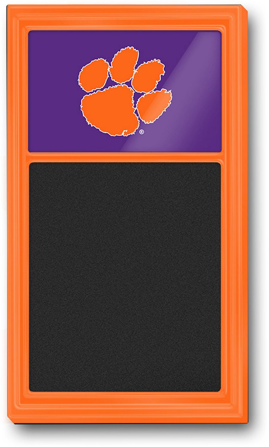 Keep score, write down reminders or leave notes for friends with The Fan-Brand Clemson University Chalk Note Board. This silk-screened chalkboard is set in a lightweight injection-molded frame that is perfect for hanging in your sports cave, office, or dorm room. Bold Tigers graphics and a high-gloss finish add athletic flair.