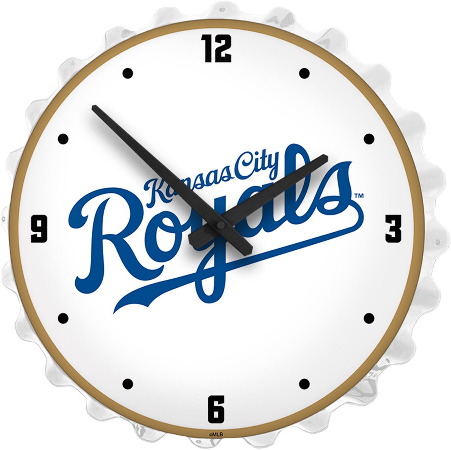 • The Fan-Brand Kansas City Royals Wordmark Bottle Cap Lighted Wall Clock