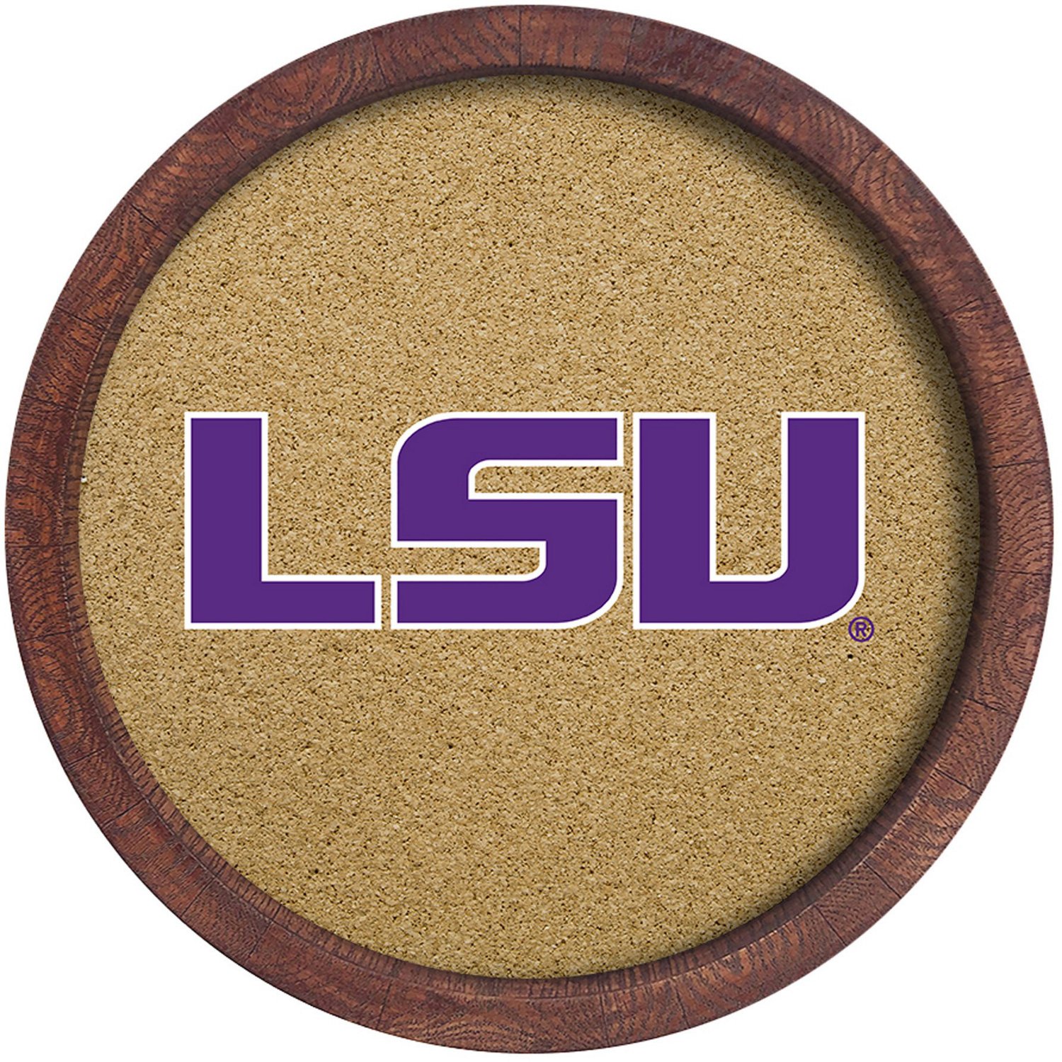 The Fan-Brand Louisiana State University “Faux” Barrel Framed Cork Board
