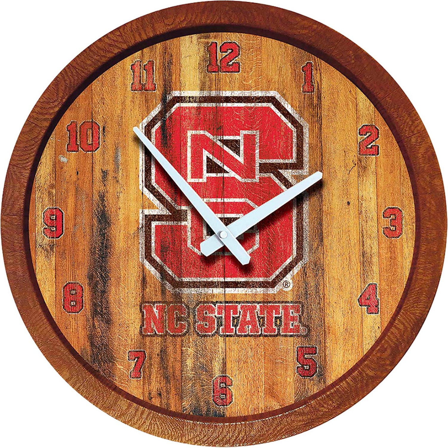 The Fan-Brand North Carolina State University Weathered Faux Barrel Top Clock