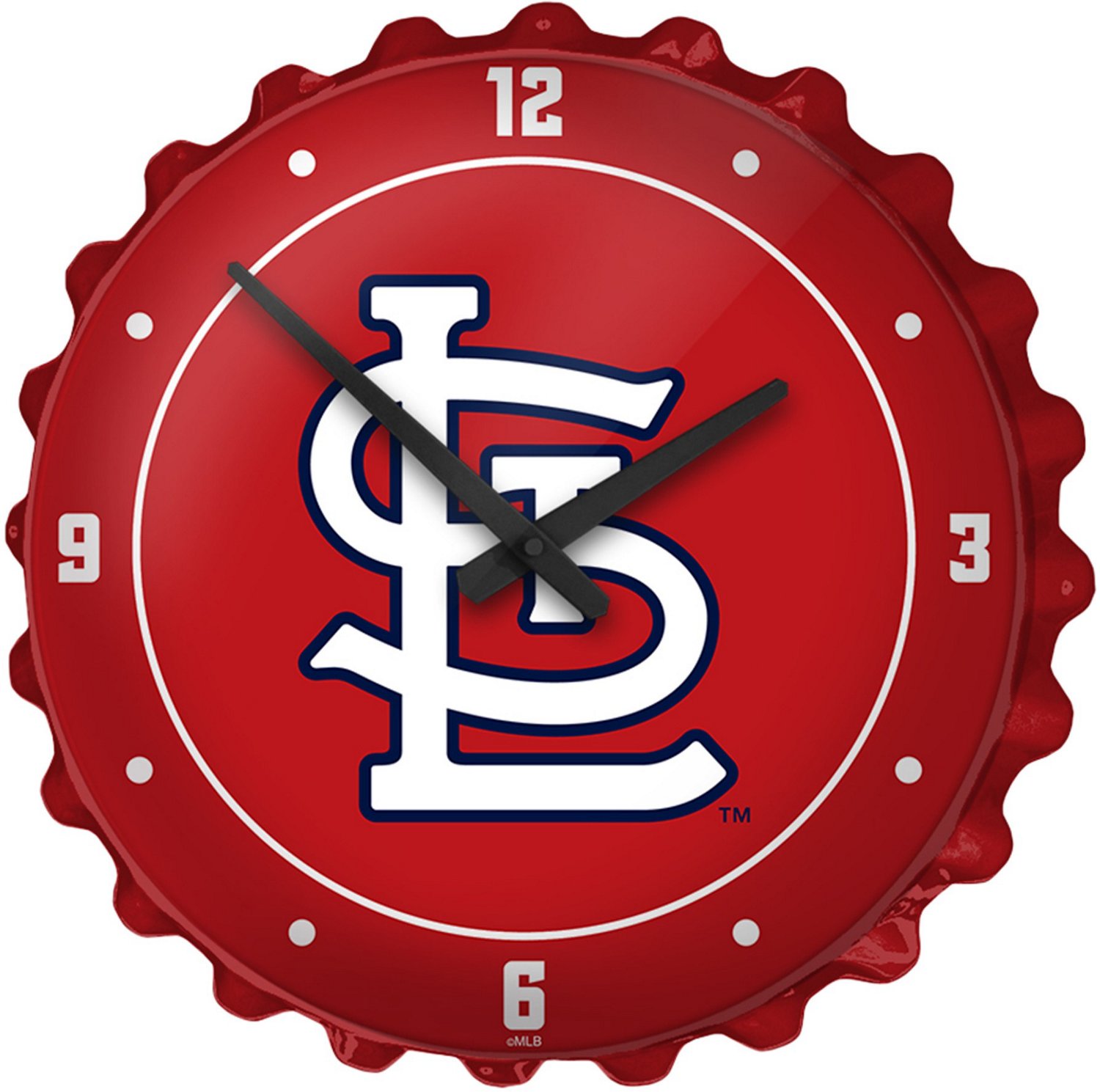 It's always game time with The Fan-Brand St. Louis Cardinals Logo Bottle Cap Wall Clock. Great for decorating your office or fan cave, this clock is made of heavy-duty, injection-molded plastic for durability and features a high-resolution digital print to put your fandom on display.