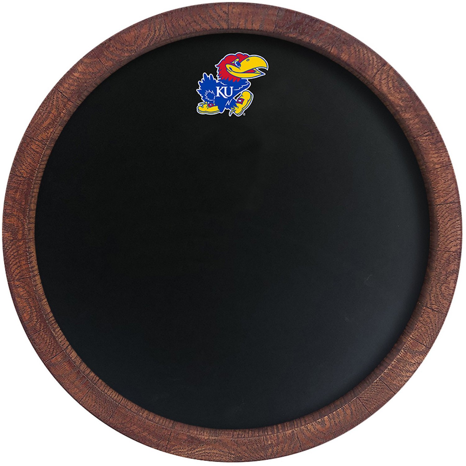 Keep score on The Fan-Brand University of Kansas Barrel Top Chalkboard. The injection-molded plastic construction affords durability, while the Hand stained wood offers an authentic look. The silk-screen chalkboard surface allows for smooth writing, and the team logo shows off your love for the Jayhawks.
