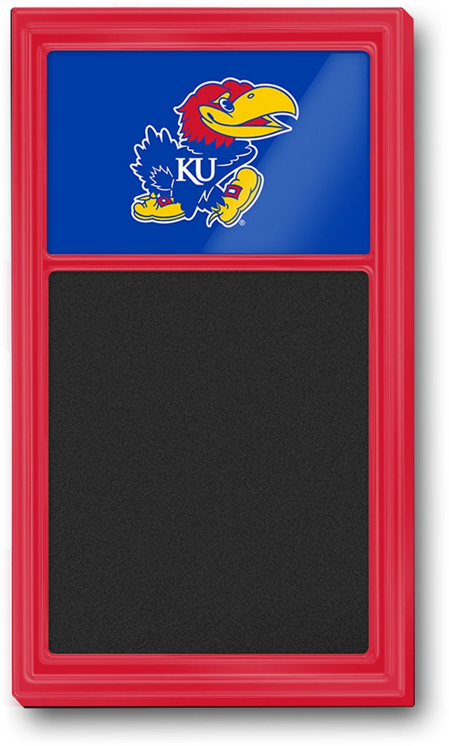 Keep score, write down reminders or leave notes for friends with The Fan-Brand University of Kansas Chalk Note Board. This silk-screened chalkboard is set in a lightweight injection-molded frame that is perfect for hanging in your sports cave, office, or dorm room. Bold Jayhawks graphics and a high-gloss finish add athletic flair.