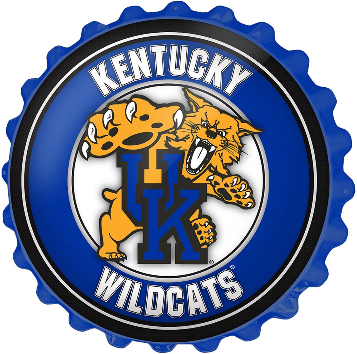 Put your Wildcats pride on display with The Fan-Brand University of Kentucky Blue Mascot Bottle Cap Sign. The injection molded plastic provides long-lasting durability, while the digitally printed Kentucky design highlights your support for the team.