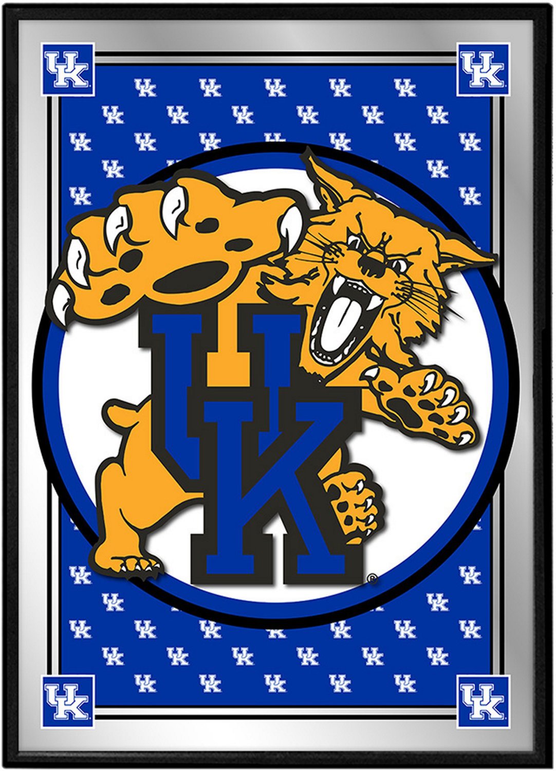 Announce your love of the Wildcats with The Fan-Brand University of Kentucky Team Spirit Mascot Framed Mirrored Wall Sign features a team name and high-resolution images. The modern design makes it a great gift idea, and the digitally printed images are bold and bright. Made in the USA.