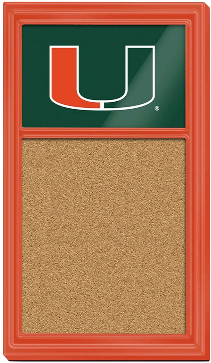 Display your favorite Hurricanes memories with The Fan-Brand University of Miami Cork Note Board. This soft cork surface is ideal for pinning photographs, messages and notes and is framed with heavy-duty injection-molded plastic for lightweight strength. The high-gloss finish and digitally printed team graphics complete the look and show your team spirit.