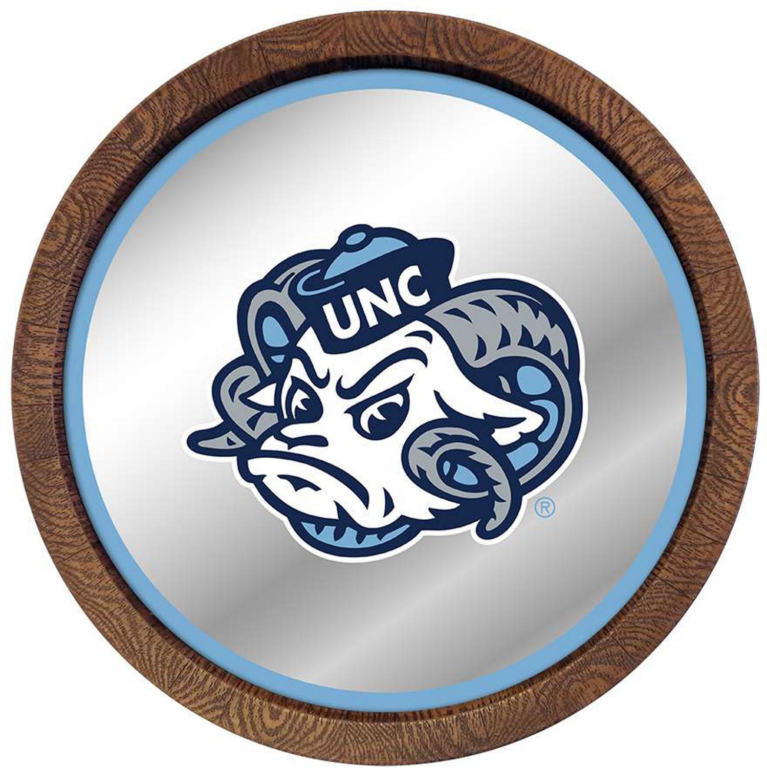 • The Fan-Brand University of North Carolina Mascot Faux Barrel Top Mirrored Sign