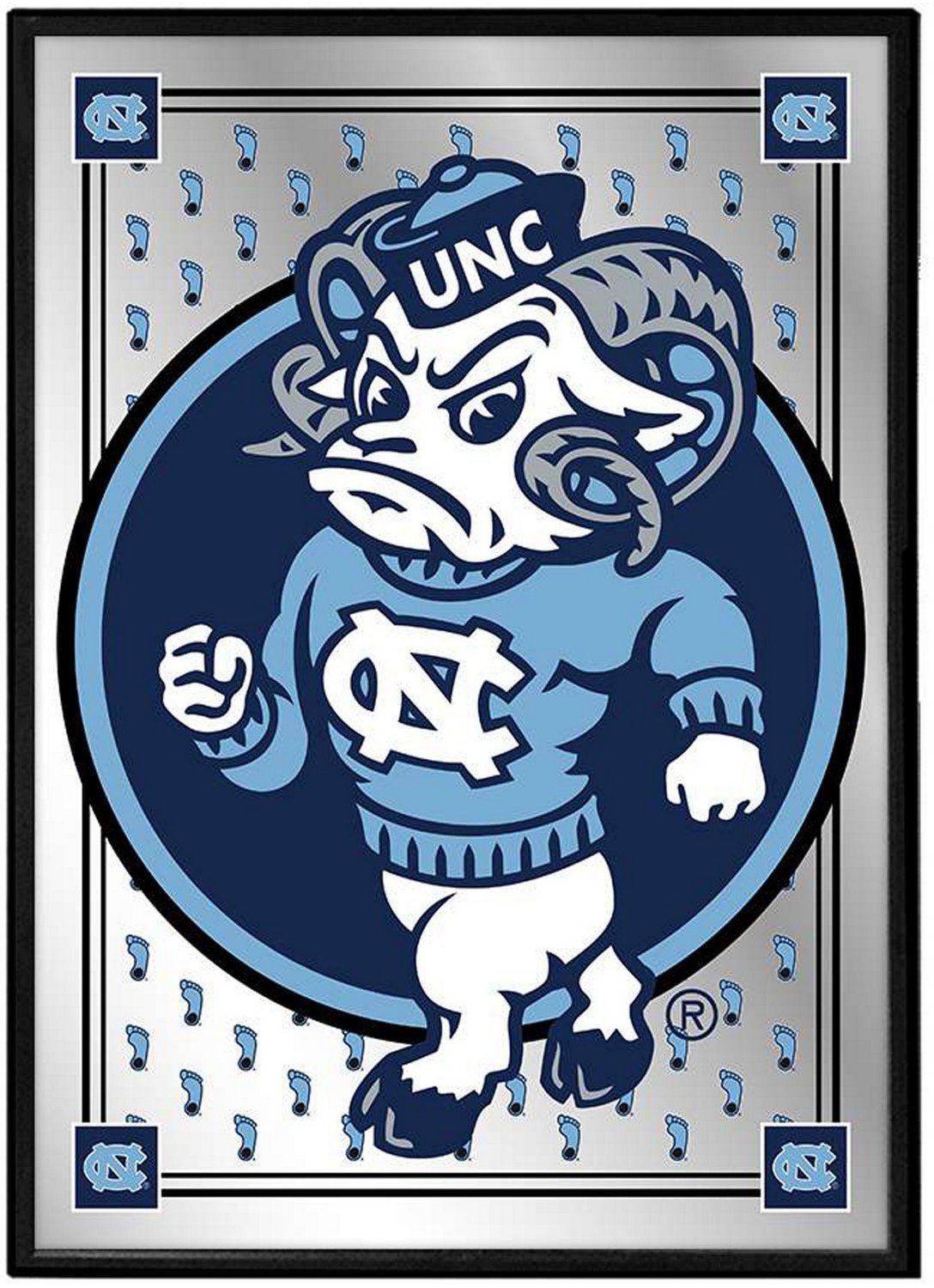 The Fan-Brand University of North Carolina Team Spirit Mascot Framed Mirrored Wall Sign