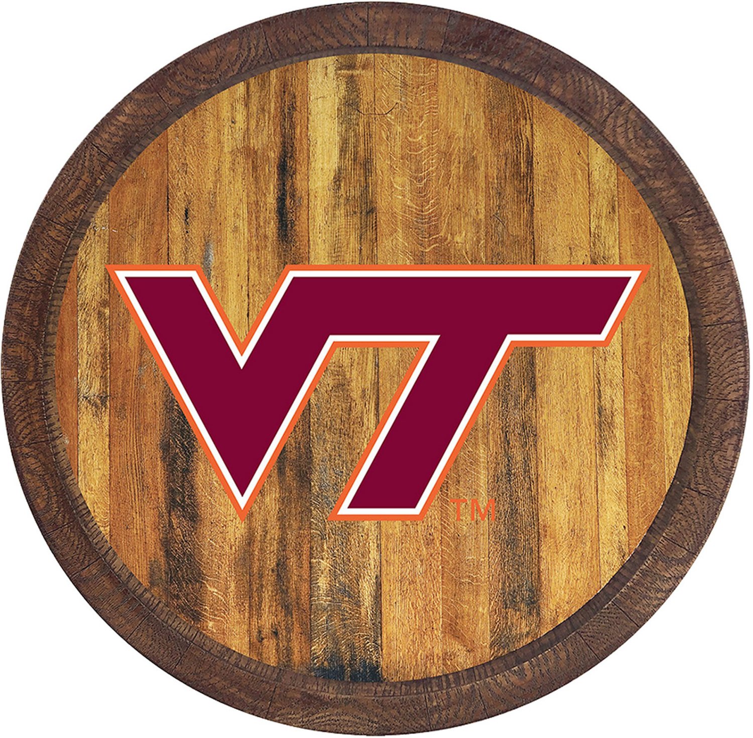 Invite the boys over for game time with The Fan-Brand Virginia Tech Faux Barrel Top Sign. The injection molded plastic construction affords durability, while the hand stained wooden design offers an authentic look. The high resolution digitally printed face shows off your Hokies pride.