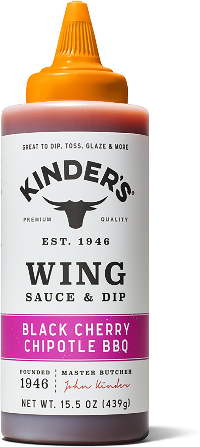 Enhance your cooking with the The Kinder's Black Cherry Chipotle Sauce 15.5 oz. It combines rich brown sugar, the tangy sweetness of black cherries, and the smoky heat of chipotle Chiles to deliver a flavor that will give a bold kick. Glaze your wings while grilling, baking, or smoking and toss with more sauce after cooking to enhance the flavor, or you can drizzle on grilled chicken, fish, or pork. The sauce can also be dipped with wings, chicken fingers, or ribs.