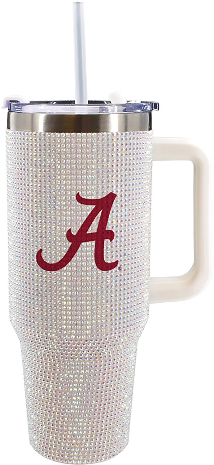 Stay hydrated on the go with The Memory Company Alabama Crimson Tide 40 oz. Bling Colossal Tumbler. Its double-wall stainless steel keeps your drink ice-cold or steaming hot for hours. The clean white finish is wrapped in radiant rhinestones, and its Alabama Crimson Tide logo is front and center, showing off your team spirit.