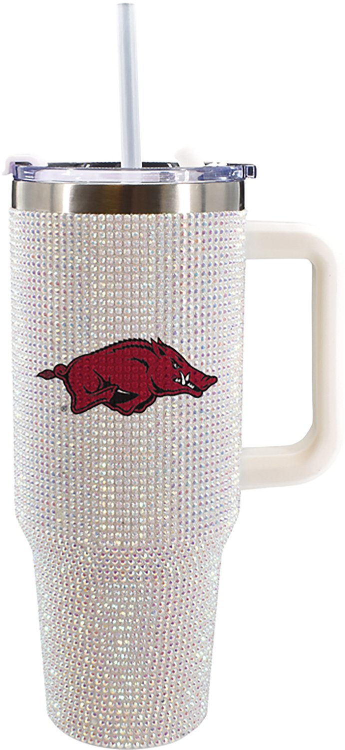 Stay hydrated on the go with The Memory Company Arkansas Razorbacks 40 oz. Bling Colossal Tumbler. Its double-wall stainless steel keeps your drink ice-cold or steaming hot for hours. The clean white finish is wrapped in radiant rhinestones, and its Arkansas Razorbacks logo is front and center, showing off your team spirit.
