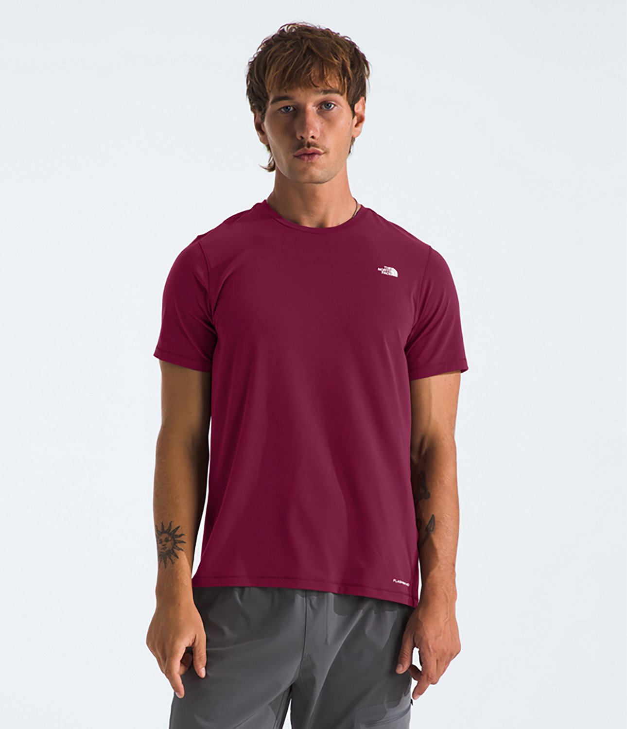 Look your best in The North Face Men's Adventure T-shirt. It is made of 92% recycled polyester and 8% elastane. The FlashDry-XDâ„¢ materials offer enhanced moisture management to help keep you comfortable, and its increased snag resistance provides extra durability. The short, set-in sleeves allow for a tailored look.