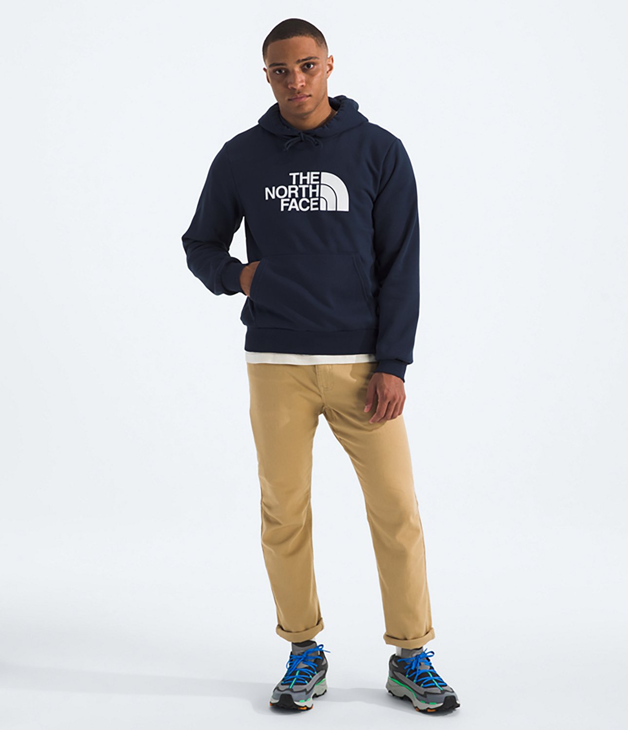 Warm up with The North Face Men's Evolution Half Dome Hoodie. The cotton and polyester material provides a comfortable feel, while the 2-piece hood and drawstring combo offers custom coverage. The graphic design adds a stylish touch.