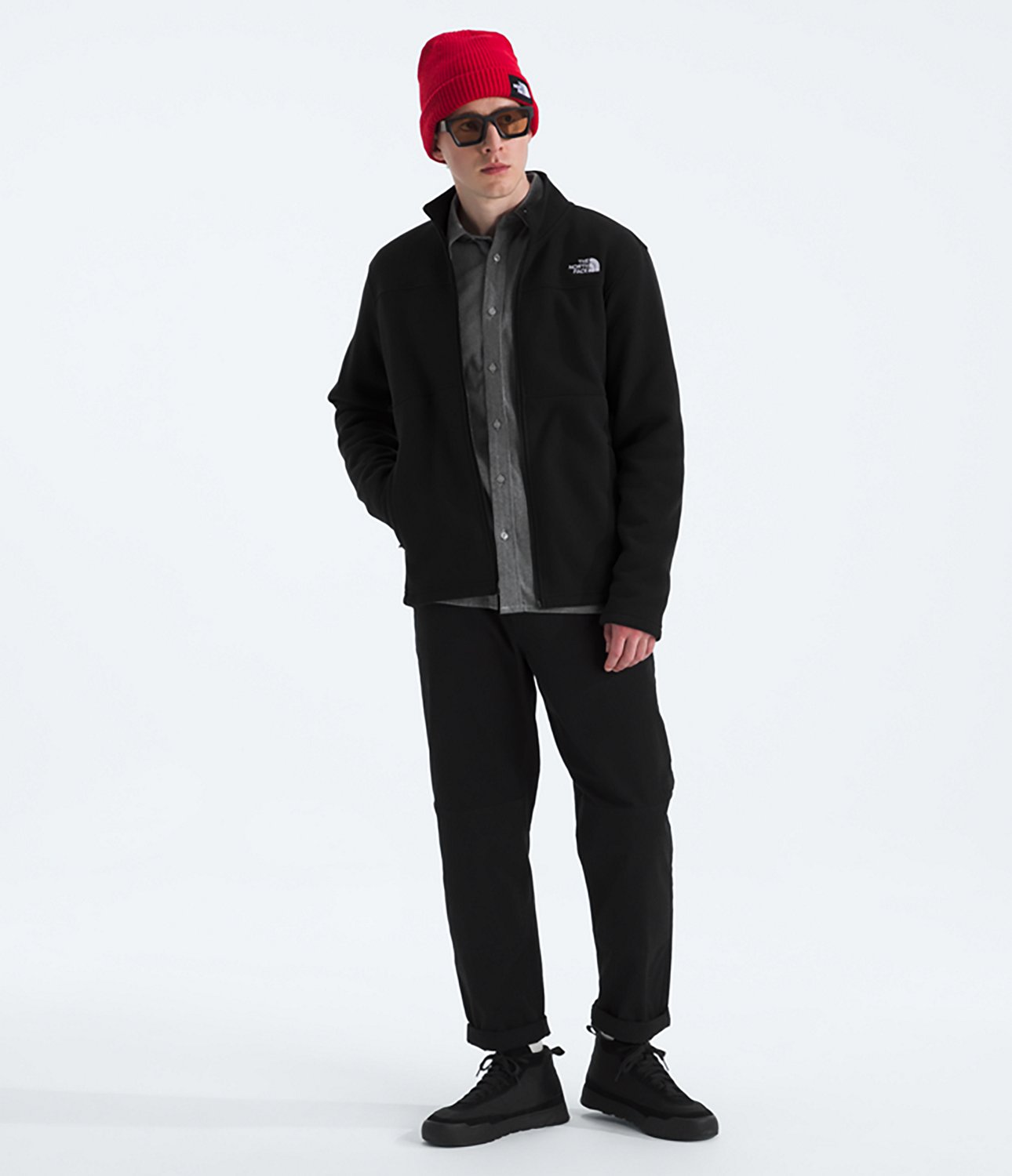 Keep cozy when you wear The North Face Men's Gordon Lyons Full Zip Jacket. Its body is made of 100% recycled polyester double-knit fleece. The long sleeves keep you warm, and its secure-zip hand pockets allow you to carry around small items. The reverse-coil center front zip closure offers a secure fit.