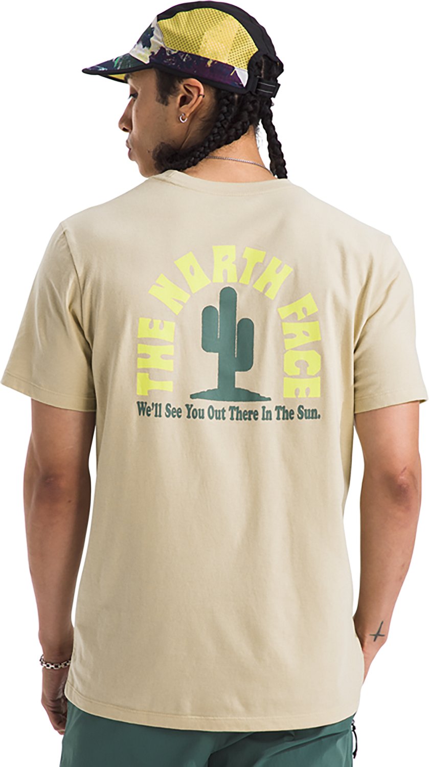 The North Face Public Lands Cactus Graphic Short Sleeve T-shirt delivers casual style and comfort. It is made of 100% cotton for a soft feel on your skin, and the T-shirt sports a crew neck with a rib on the collar for a relaxed look and feel that is still durable. Features a graphic design on the back.