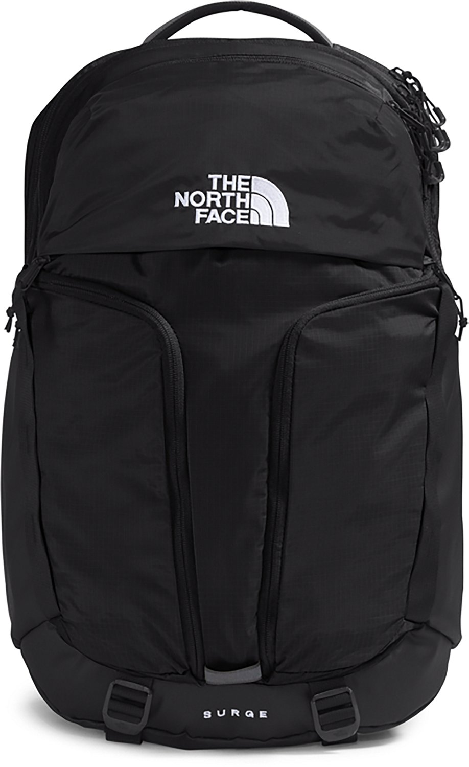 Haul your gear to school, the office or on the road with The North Face Surge Backpack. The 300-denier heathered polyester ripstop fabric affords durability, while the FlexVent Suspension system features articulated shoulder straps for comfortable carrying. Boasting a large main compartment, front organization pocket and various exterior pockets, this backpack provides plenty of space for your gear.