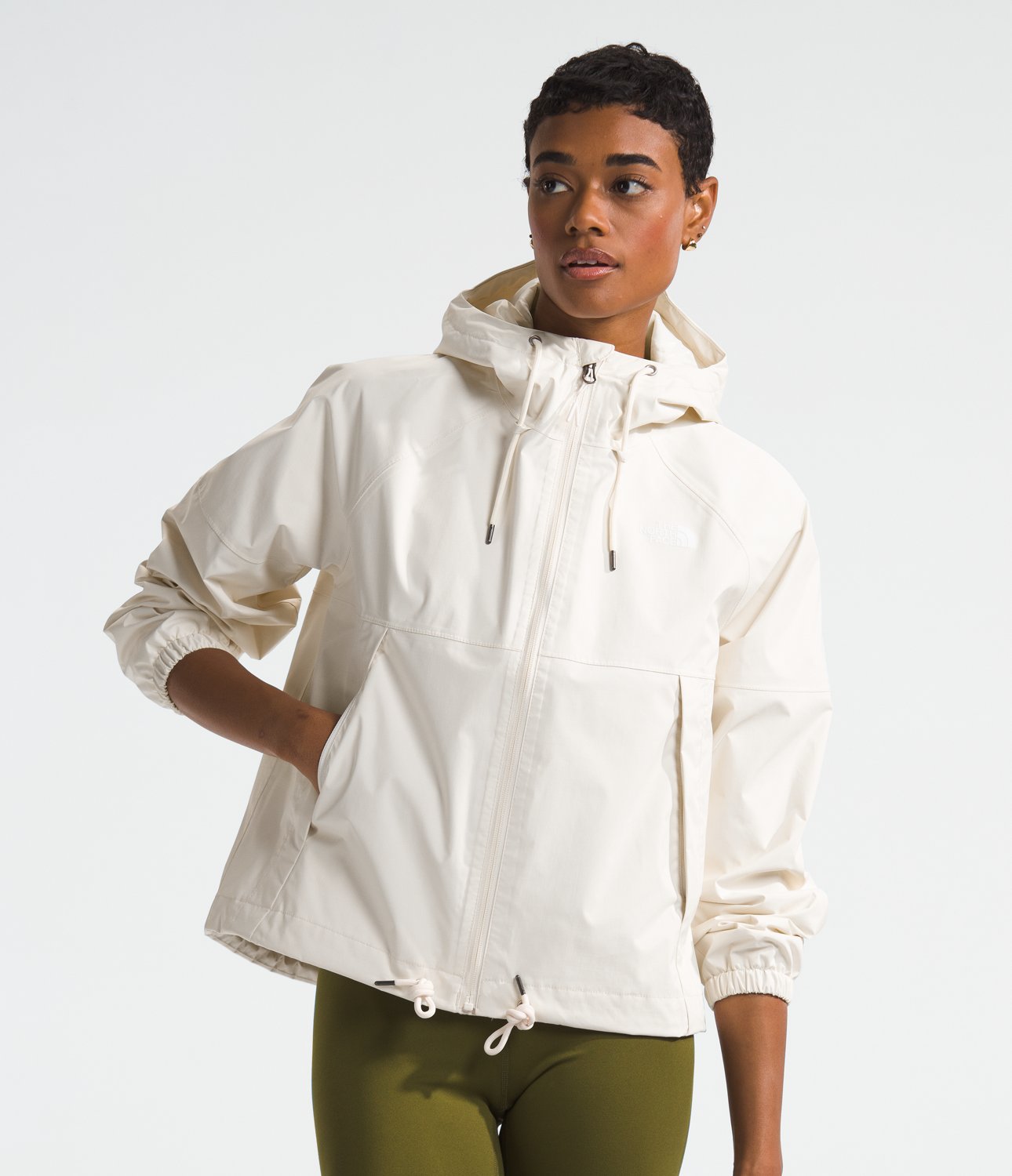Stay cozy on your adventures wherever you sport The North Face Women's Antora Hoodie Rain Jacket. The 100% recycled nylon ripstop fabric offers durability and comfort. The DryVent™ seam-sealed construction, non-PFC DWR finish and 100% windproof finish help keep you warm, dry and comfortable. The zippered hand pockets provide secure storage for your essentials, while the droptail drawstring hem and attached 3-piece drawstring hood offer versatile coverage from the elements.