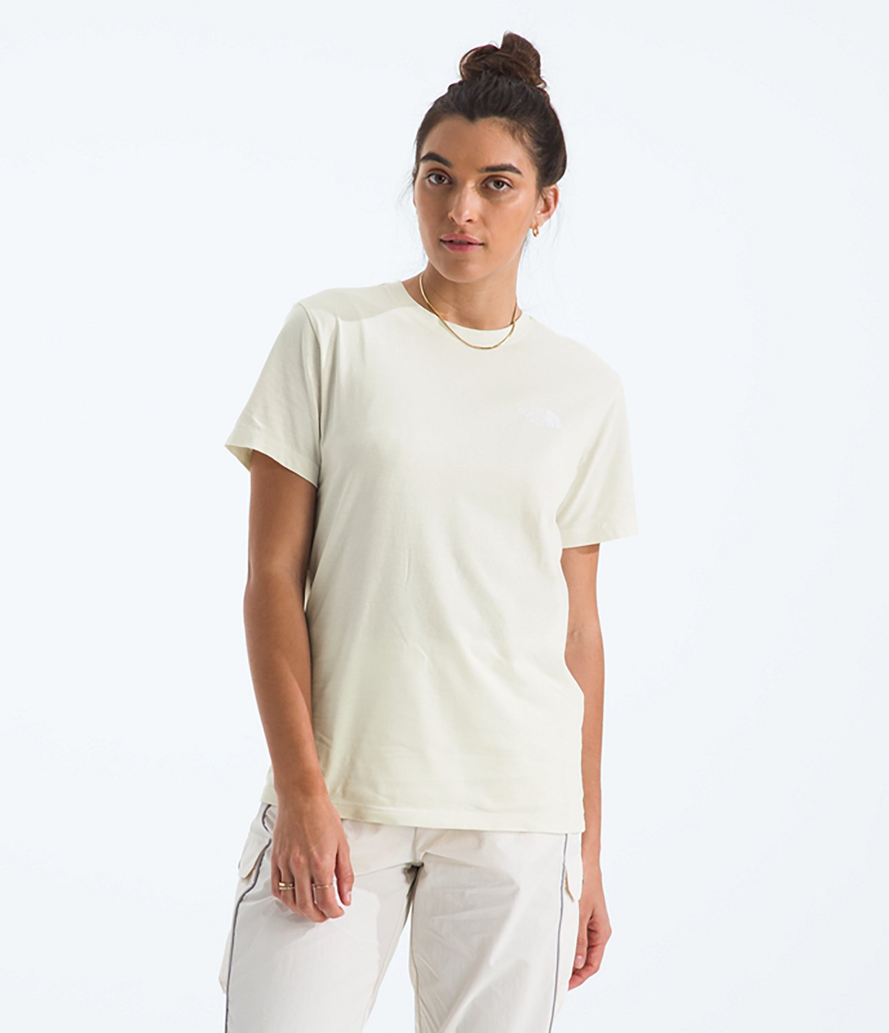 Journey forth with The North Face Women's Evolution Floral Box NSE Graphic T-shirt. The cotton material provides a comfortable feel, while the heat-transferred graphics offer a stylish look.