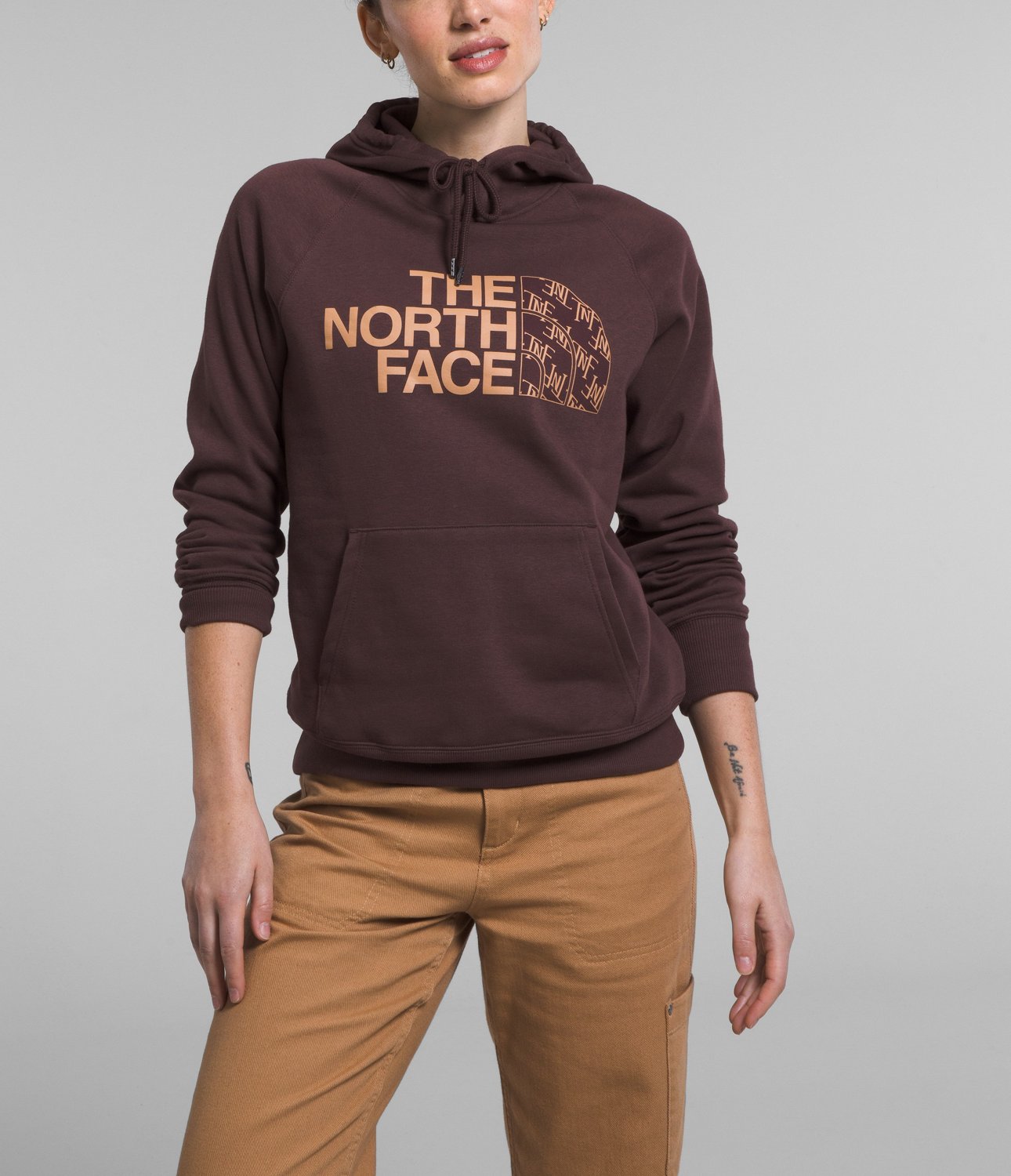 Take on the day in comfort and style wherever you go in The North Face Women's Half Dome Pullover Hoodie. The cotton and polyester knit fabric delivers an ultrasoft, cozy feel for comfort. The ribbed cuffs and hem create a snug fit. The raglan sleeves help ensure comfortable range of mobility, while the water-based, screen-printed logo graphic design adds classic brand style to your look.