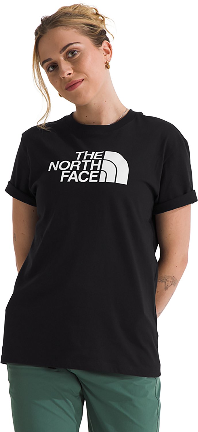 Look your best in The North Face Women's Half Dome Short Sleeve T-shirt. It is made of 100% cotton. The short sleeves keep you cool, and its ribbed crew neckline adds to the casual design. The logo screen-printed on the chest is oversized.