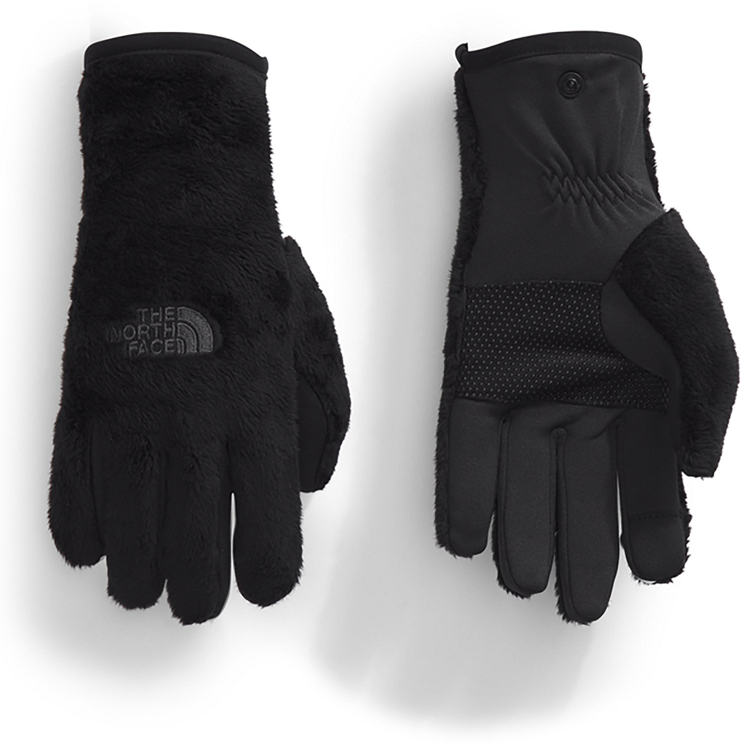 Pull out your phone on the slopes with The North Face Women's Osito Etip Gloves. The Etip technology allows for use with touchscreen devices, while the silicone palms offer a firm grip. The olyester material provides comfort, and the zigzag stitching delivers a secure fit.