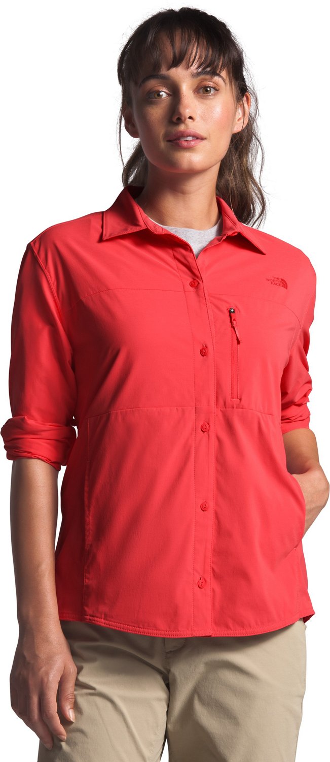 Trust The North Face Women's Outdoor Trail Long Sleeve Button Down Shirt to keep you cool and comfortable on the trail. The durable nylon and elastane woven construction delivers an ultrasoft feel and a flexible fit, while the FlashDryâ„¢ technology keeps you dry. The UPF 50 protection blocks out UV rays, and the zippered chest pocket stores your essentials.