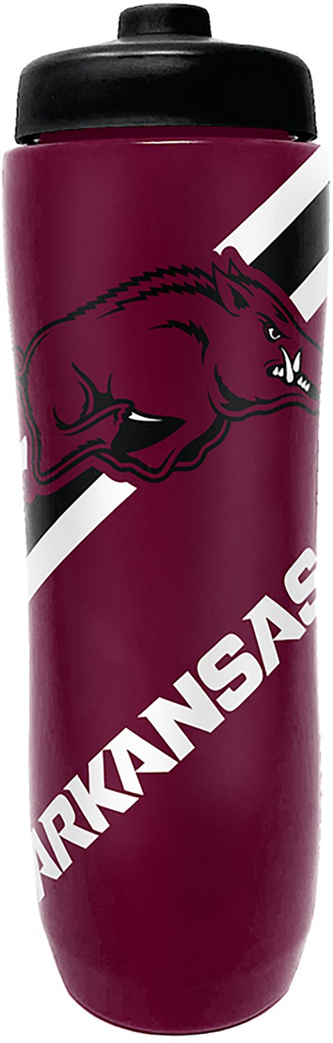 Quench your thirst with The Party Animal University of Arkansas 32 oz Squeezy Water Bottle. The pop top lid allows for easy drinking, while the team logo shows off your Razorbacks pride.