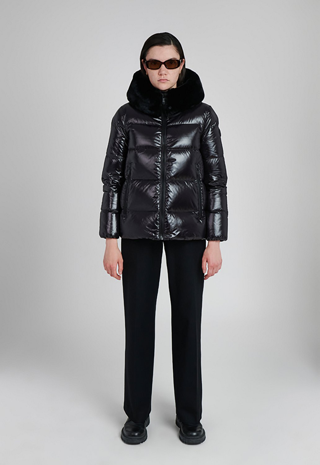 Made from shiny nylon with a wide body and single needle quilt