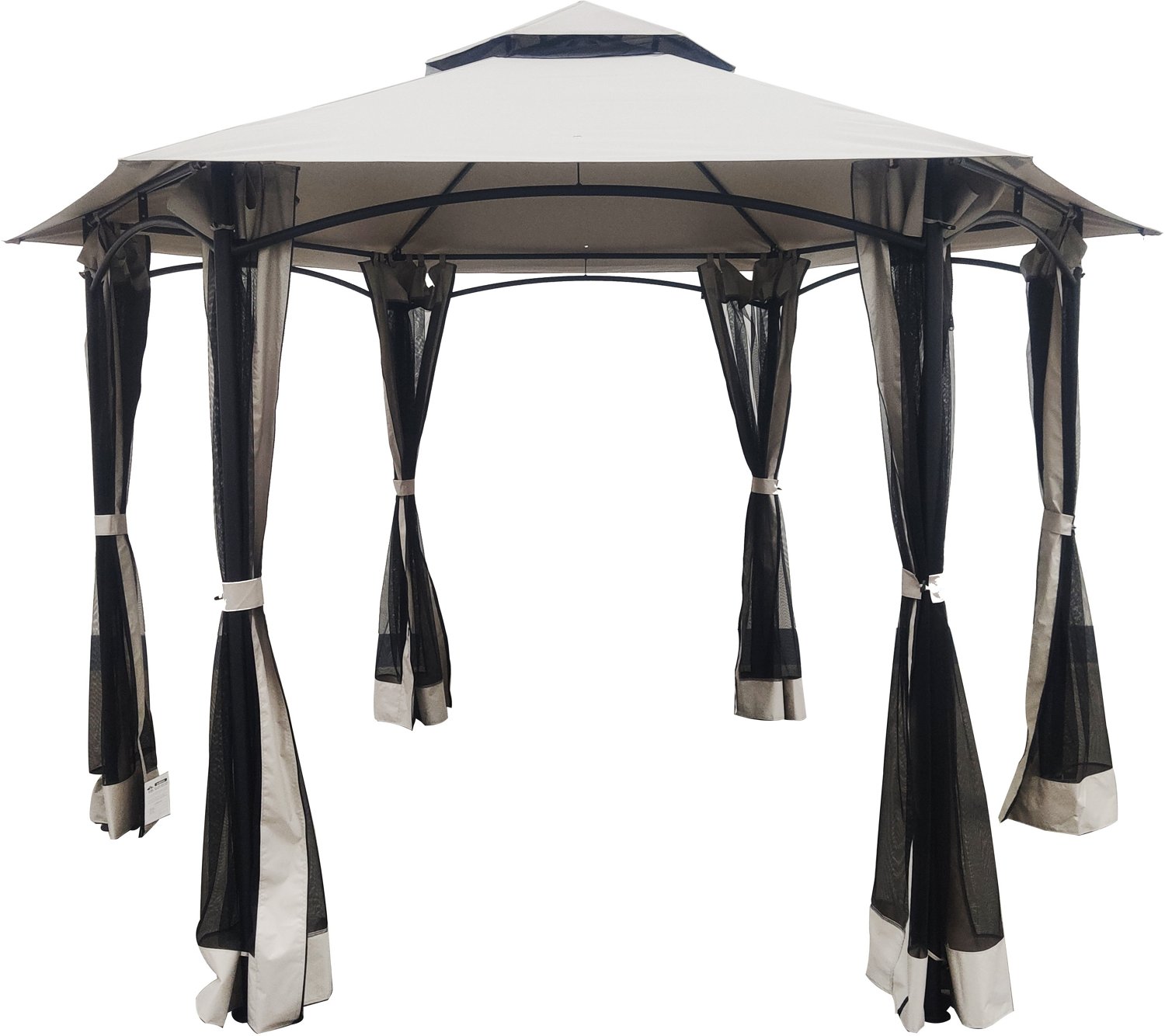 Stay comfortable for your backyard barbecues with The Shade Semi Permanent Hex Gazebo. The vented canopy provides stability during heavy wind, while the powder coating prevents rust and corrosion. The mosquito netting prevents entry of bugs, while the full steel frame offers long-lasting durability and strength.