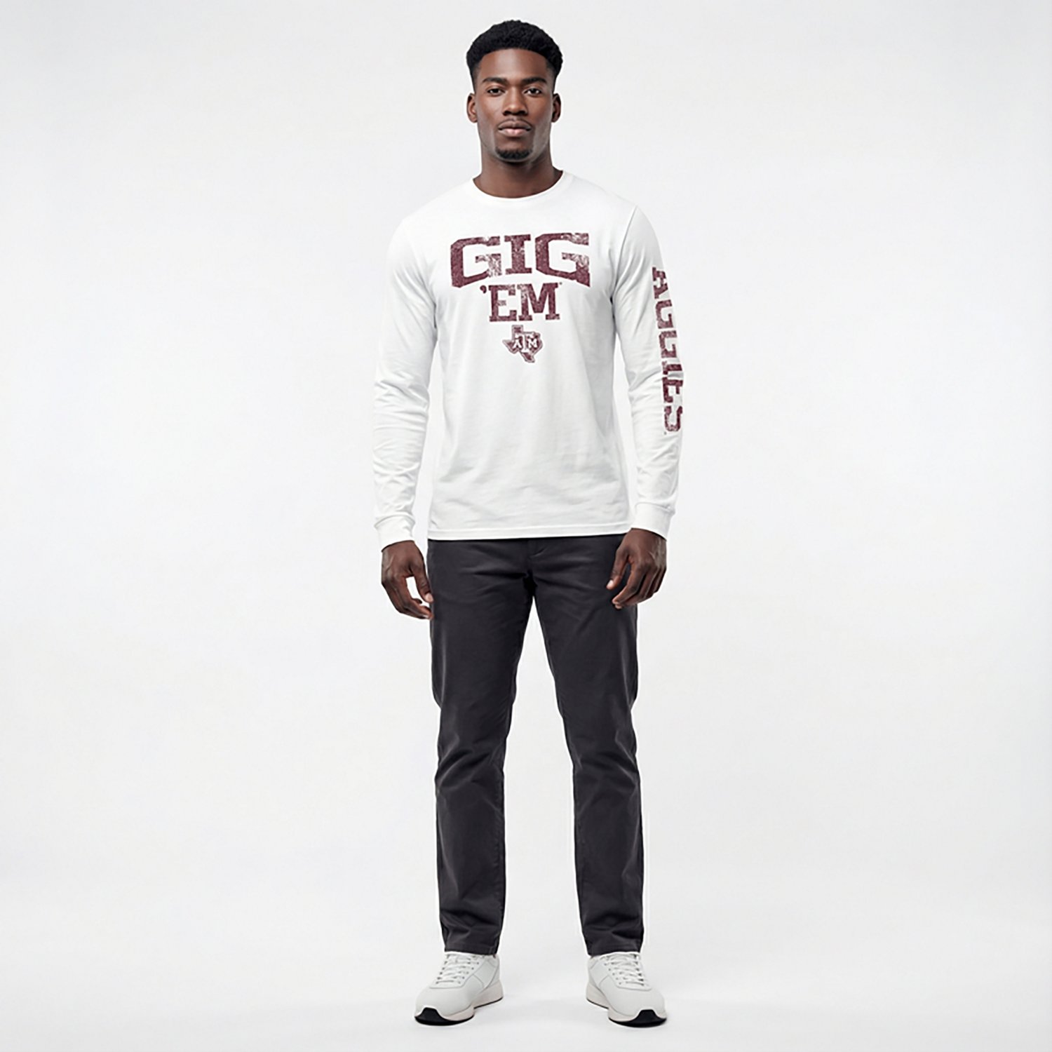 The Victory Men's Texas A&M University Gig Em Arch Sleeve 2 Hit Long Sleeve Graphic T-shirt