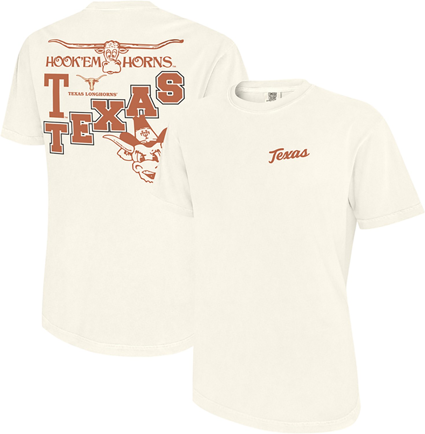 Show off your team spirit by wearing The Victory Men's University of Texas Diagonal Texas Comfort Colors Graphic T-shirt. The cotton material provides a comfortable feel, while the graphic design lets everyone know you're a Longhorns fan.