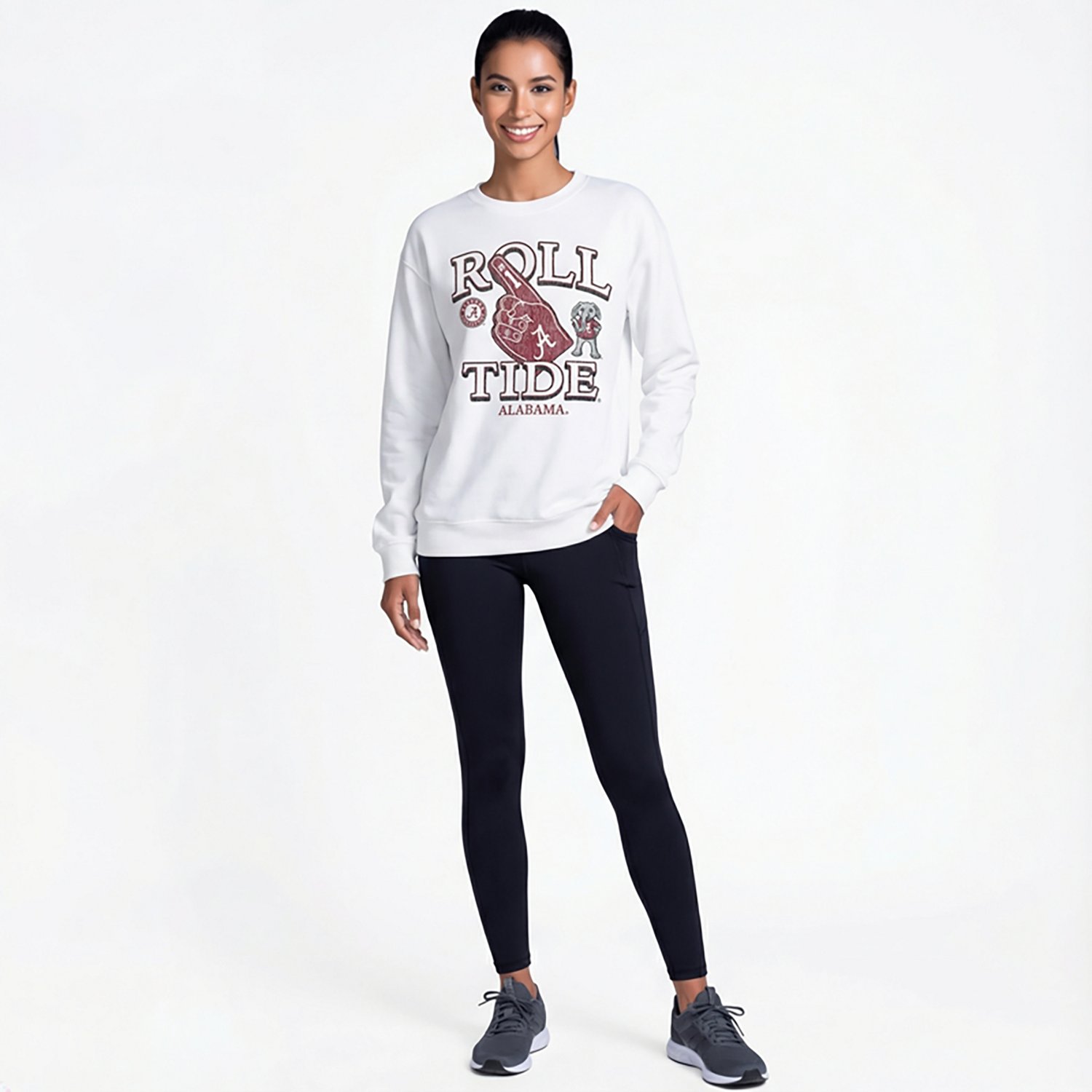 Celebrate the Crimson Tide wearing The Victory Women’s University of Alabama Roll Tide Foam Finger Crew. It’s designed with integrated side pockets to keep your phone and other small essentials close by, and the team foam finger graphic on the front adds a fun pop of style.