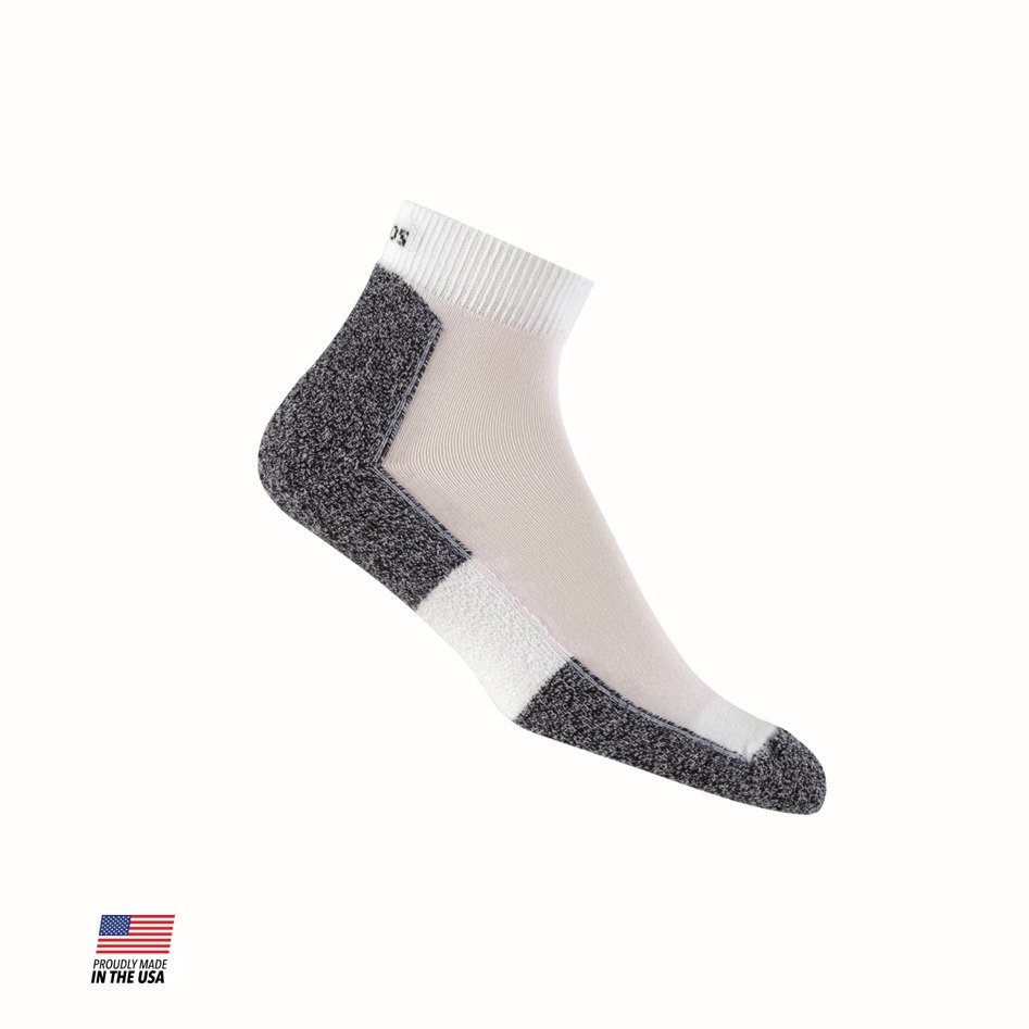 Hit your go-to route in the Thorlos Extra Large Adults' Lite Running Mini Crew Socks. Give it your best shot and break some records with the thin padding and supportive arches to cushion you towards your next victory. If you're feeling the heat, THOR•WICK® COOL technology wicks away moisture to keep you cool and comfortable. Made in USA.
