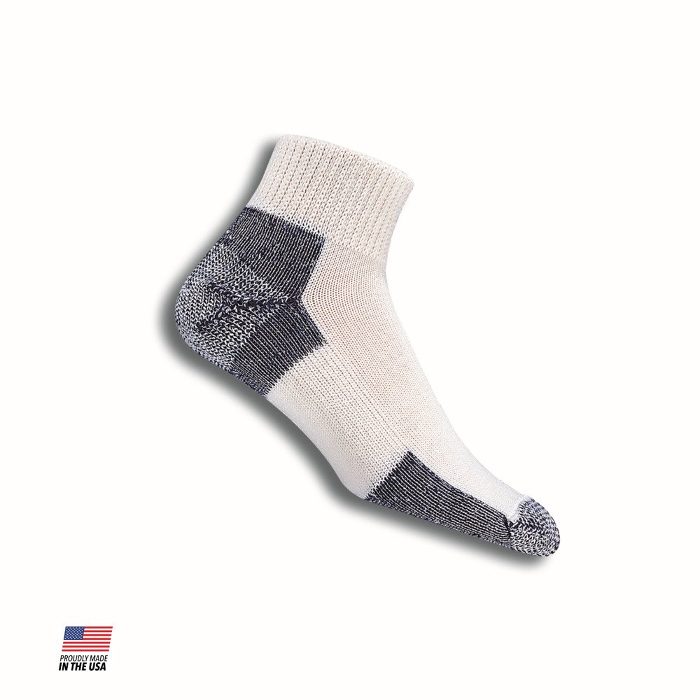 If you're really feeling the effects of your last run, try the Thorlos Large Adults' Running Mini Crew Socks on for size. Plenty of plush, thick cushioning helps treat your sore feet to ease you back into the grind. As you're getting back into pounding the pavement, moisture-wicking THOR•LON® technology keeps you cool during every mile. Made in USA.