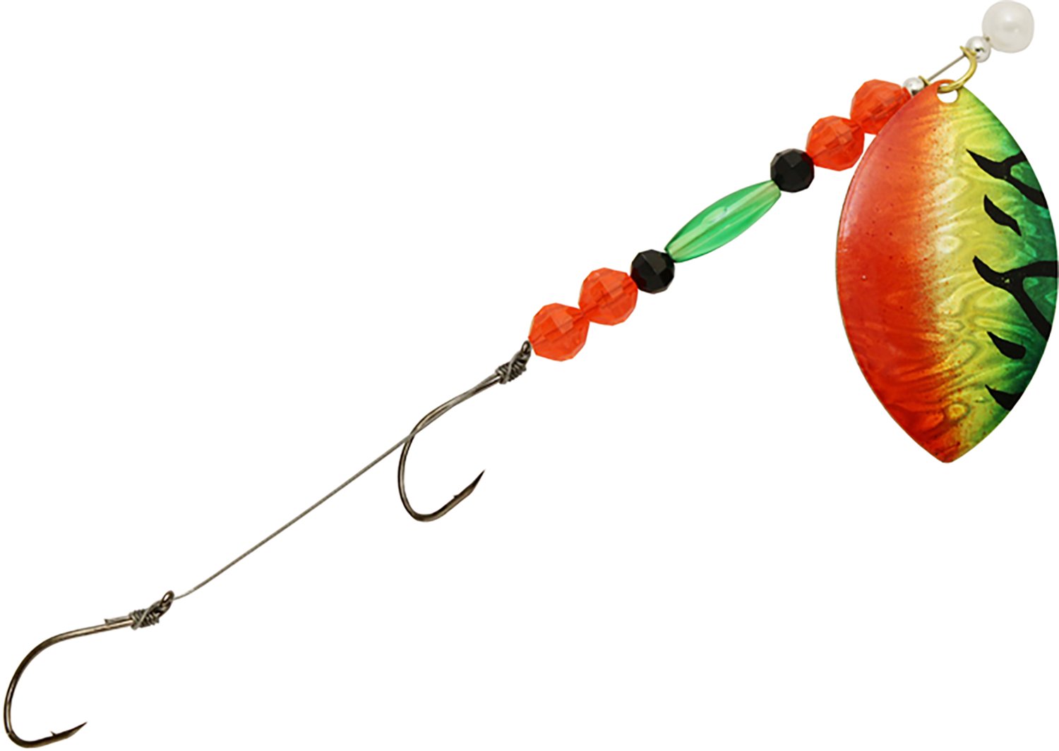 Catch fish with the help of the Three D #6 Wide Willow Blade Worm Harness. The colorful appearance offers increased attraction, while the hooks provide a strong hold.