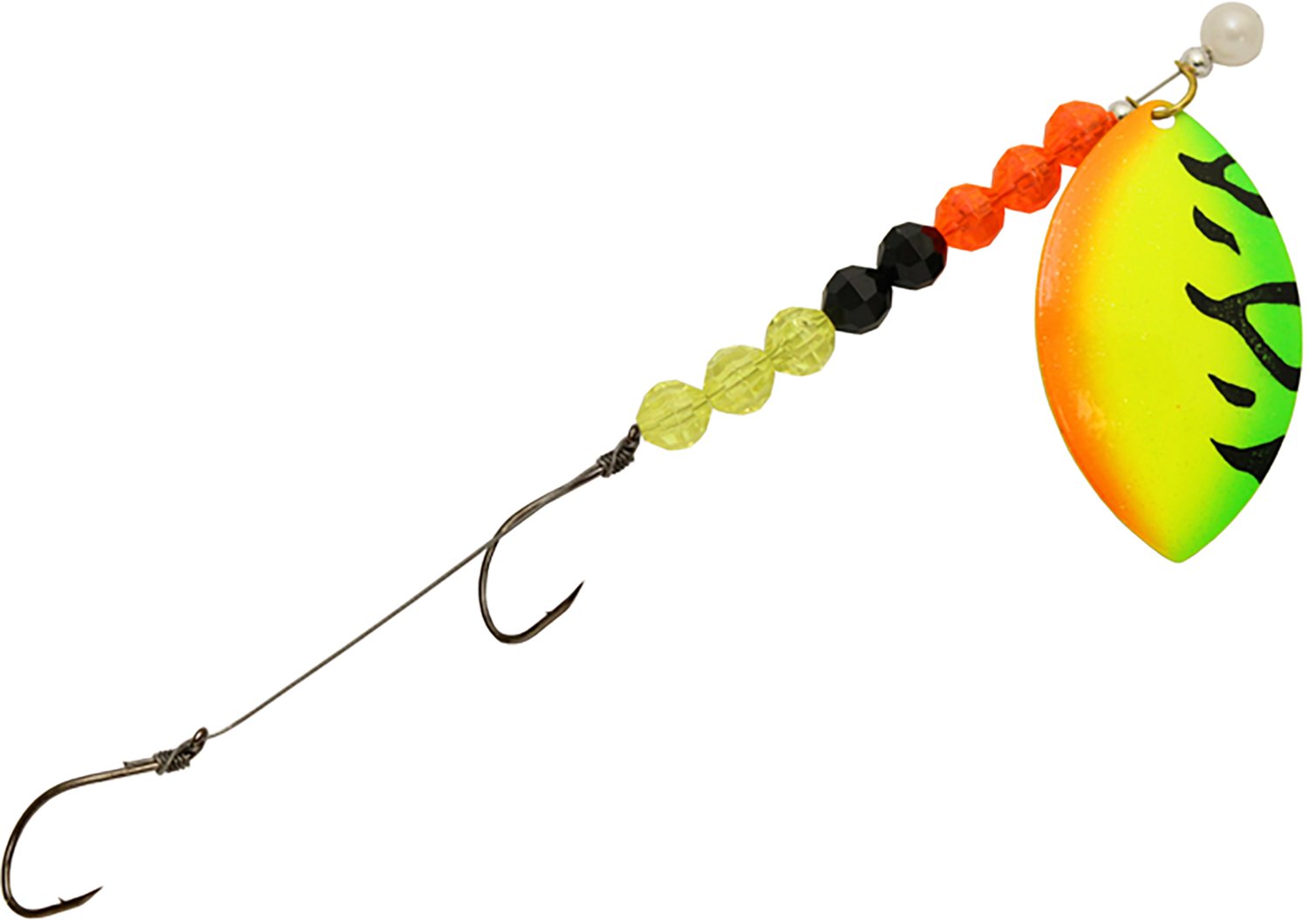 Catch fish with the help of the Three D #6 Wide Willow Blade Worm Harness. The colorful appearance offers increased attraction, while the hooks provide a strong hold.