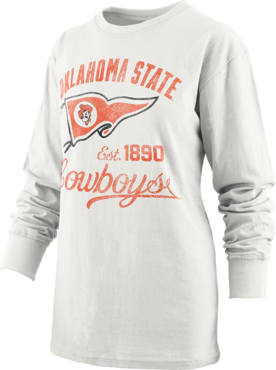 Get ready for game day with the Three Square Oklahoma State University Pine Top Old Standard Long Sleeve Graphic T-shirt. The cotton material provides a comfortable feel, while the graphic design shows off your Cowboys pride.