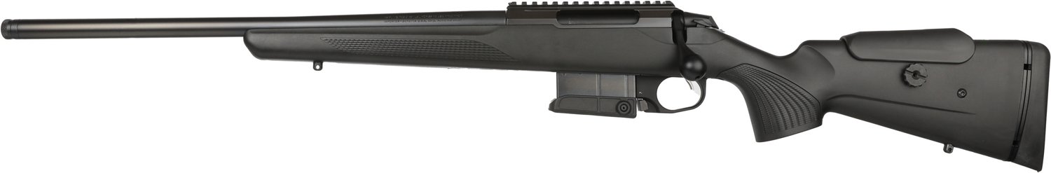 The Tikka T3X CTR 6.5 Creedmoor Bolt Action Rifle is built with a threaded steel barrel and a synthetic stock with an interchangeable grip and a soft recoil pad. It has a 10+1 round capacity and comes with a 2-position safety.