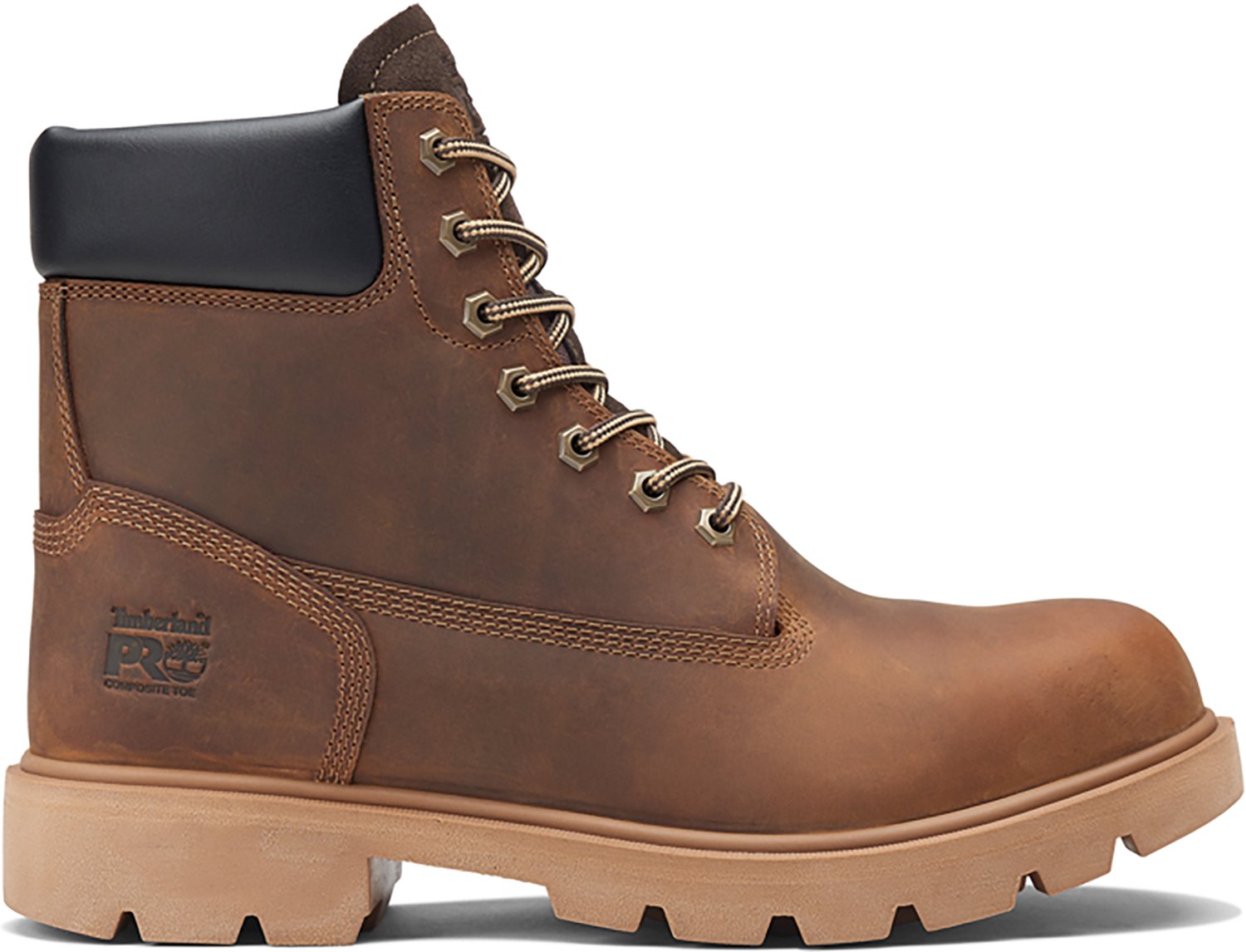 Protect your feet when you wear the Timberland Pro Men's Sawhorse 6 in Work Boots. Their full grain leather upper enhances stability. The PU shell and midsole provides rugged durability and cushioning, and their composite toe adds protection. The contoured non-metallic shock-diffusion plate offers structural support.