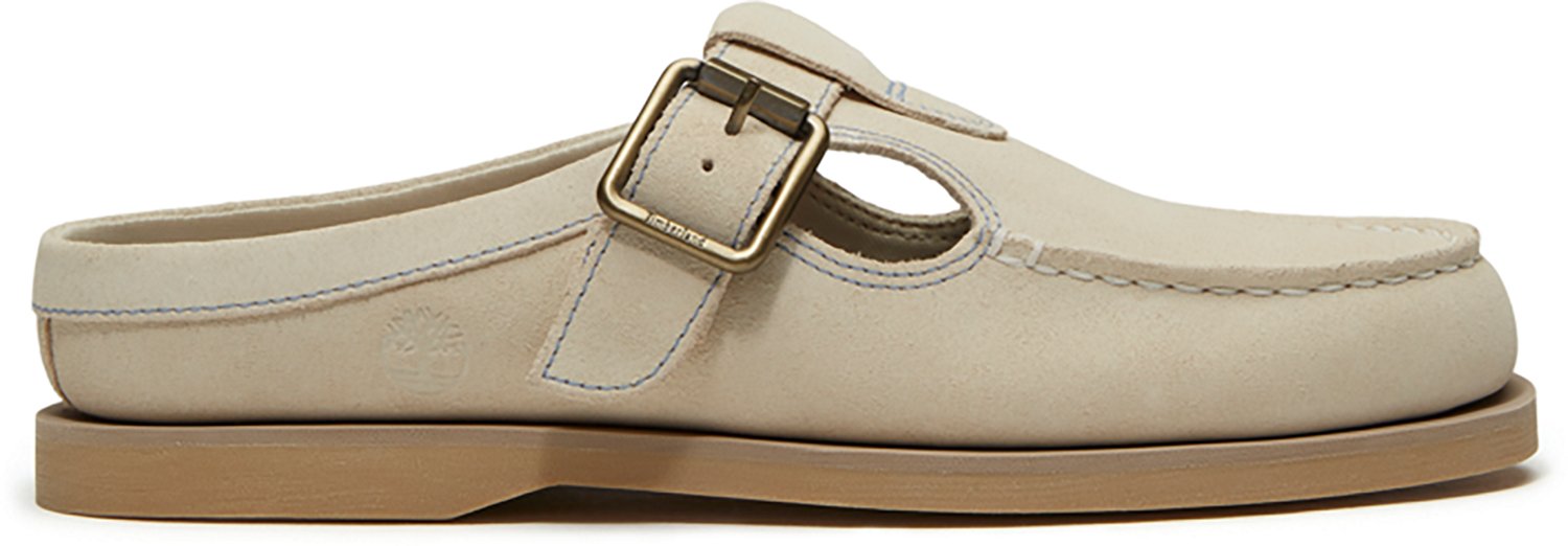 Slip on comfort by wearing the Timberland Women's Classic Boat Mules. The suede uppers afford durability, while the EVA midsoles provide cushioned comfort. The adjustable buckles offer a custom fit.