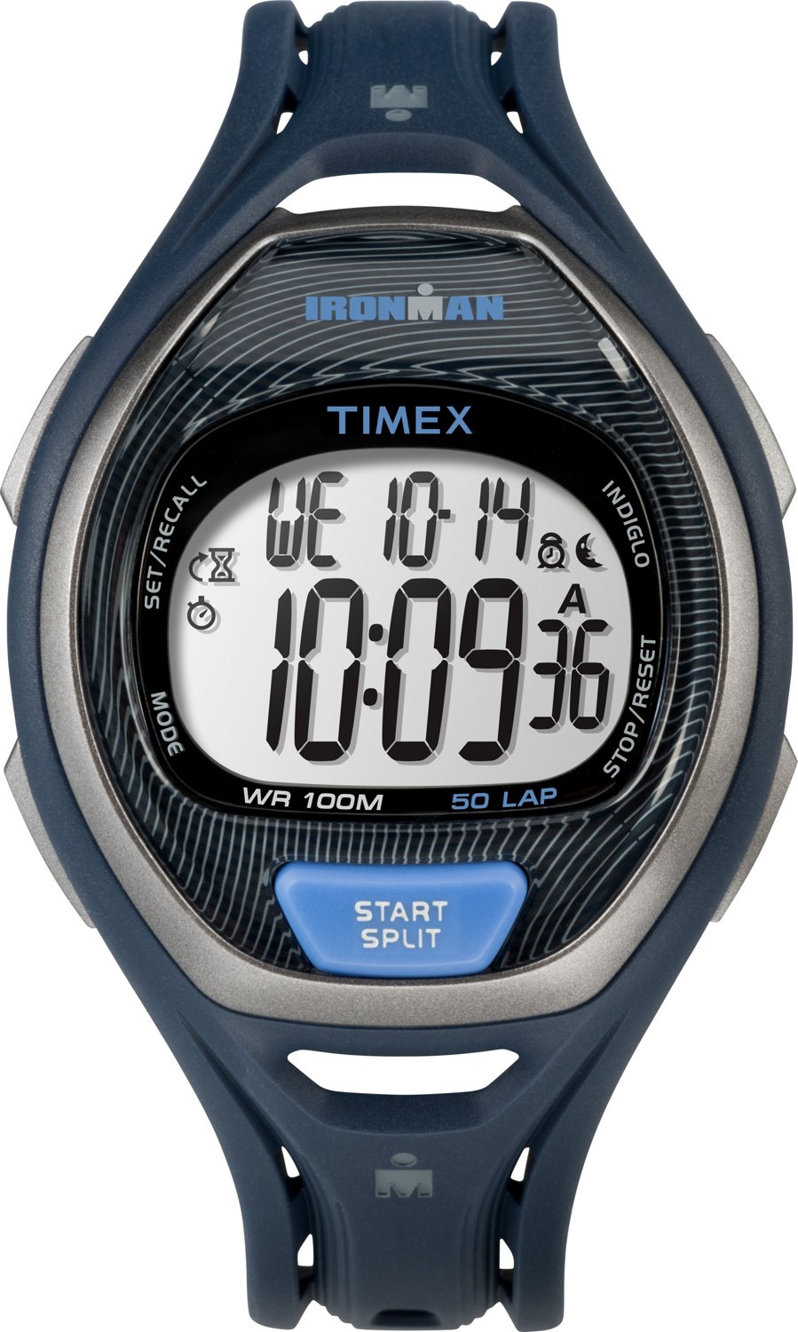 Wear the Timex Men's Ironman® Sleek 50 Full-Size Watch during your next workout. The 50-lap memory recall feature helps you keep track of your progress, while on-the-fly lap or split recall makes it easy to review your lap or split times. The INDIGLO® night-light provides illumination for easy reading in low-light conditions.