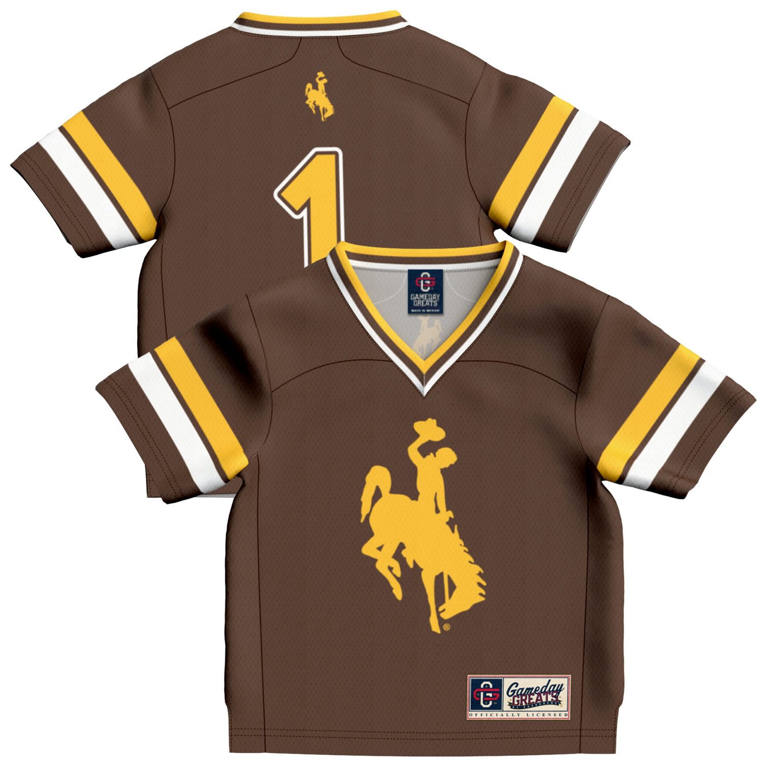 Get your youngest fan ready to cheer on the Wyoming Cowboys with this 1 Lightweight Collegiate Football Fashion Jersey from GameDay Greats This jersey features smooth fully sublimated Wyoming Cowboys graphics and colors ensuring a vibrant no-fade look that lasts With its comfortable fit and lightweight design this jersey is perfect for cheering on the Cowboys all season long