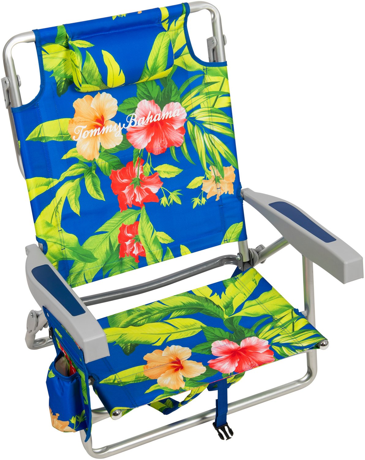 Grab the Tommy Bahama Floral Beach Chair and head to the beach. The back of this chair has five-adjustable positions, allowing you to sit up straight or fully recline for even sunning. The aluminum and steel frame remains strong in the sun, and the polyester fabric provides a comfortable place to sit.