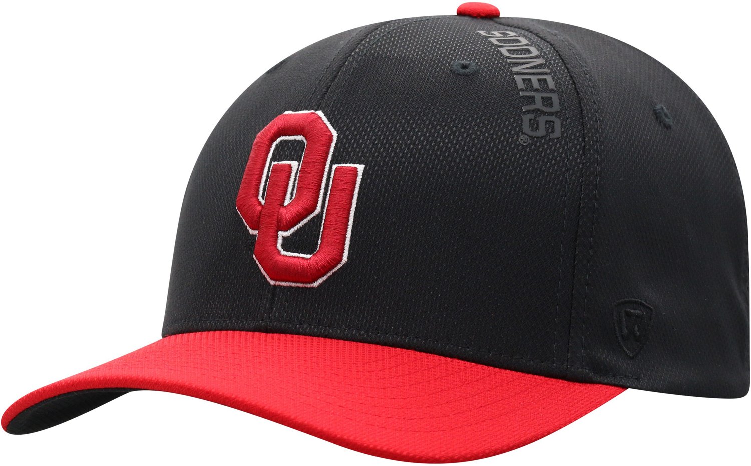 Show off your Sooners spirit in the Top of the World Adults' University of Oklahoma Reflex One-Fit 2-Tone Cap. The 1-fit design provides comfortable wear, and the graphic logo on thefront adds style.